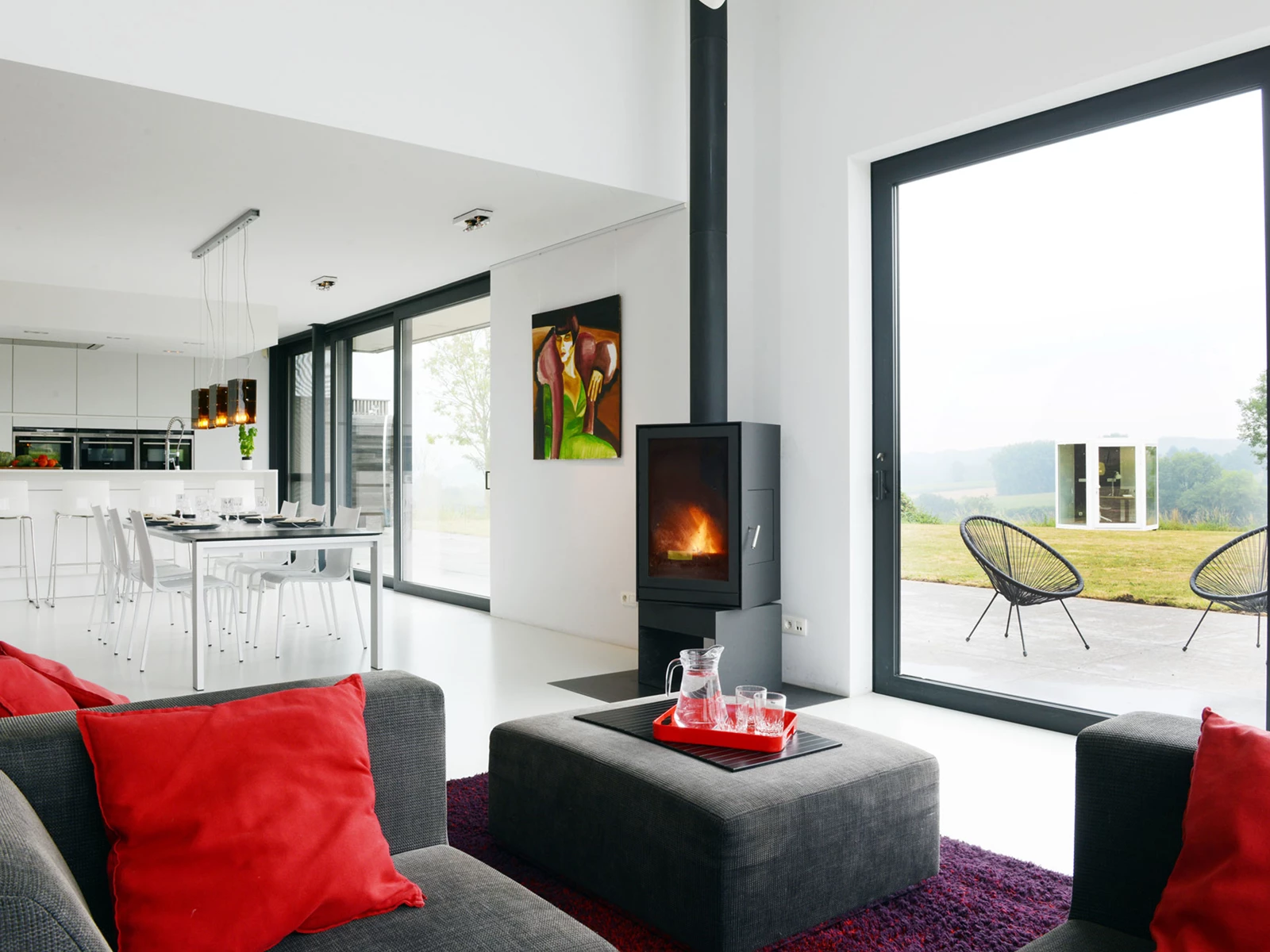 Zowel David als Karen zijn heel regelmatig thuis aan het werk. In hun woning hebben ze er ook plaats voor: via een grote vide in de leefruimte bereik je boven een bureau voor twee personen met adembenemend zicht op het omringende heuvellandschap. "Een gedroomde werkplek, daar sta ik niet altijd genoeg bij stil.", aldus Karen.