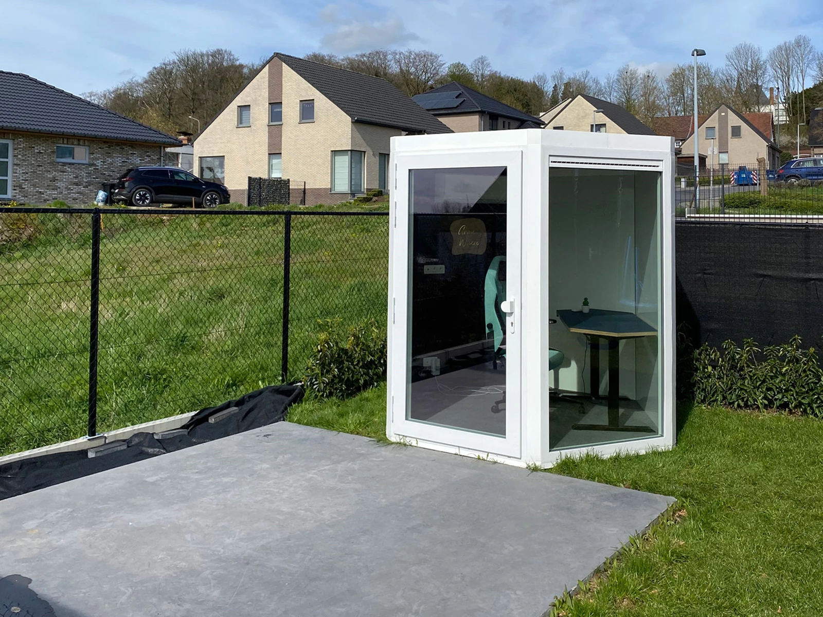 Shawn Hellinckx werkt als zelfstandige van thuis uit. Zijn woning beschikt niet over een aparte bureauruimte. De aanschaf van een office pod bleek financieel niet haalbaar, maar de oplossing van Annie Where is dat wél.